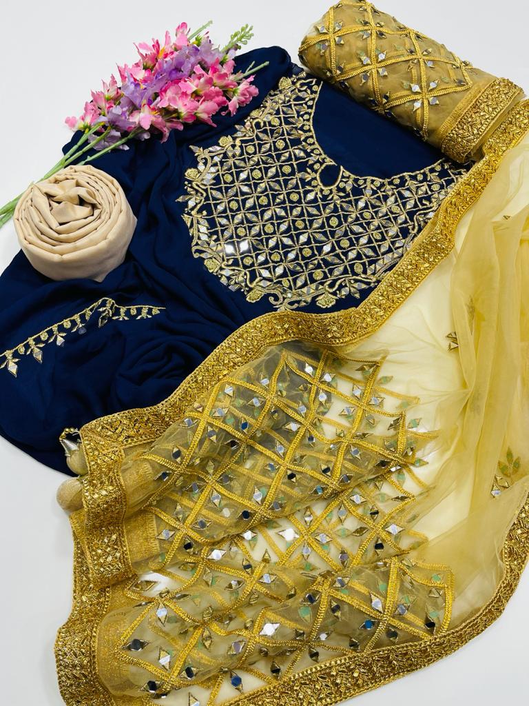 সেমী স্টিচড জর্জেট এমব্রয়ডারি থ্রী পিস