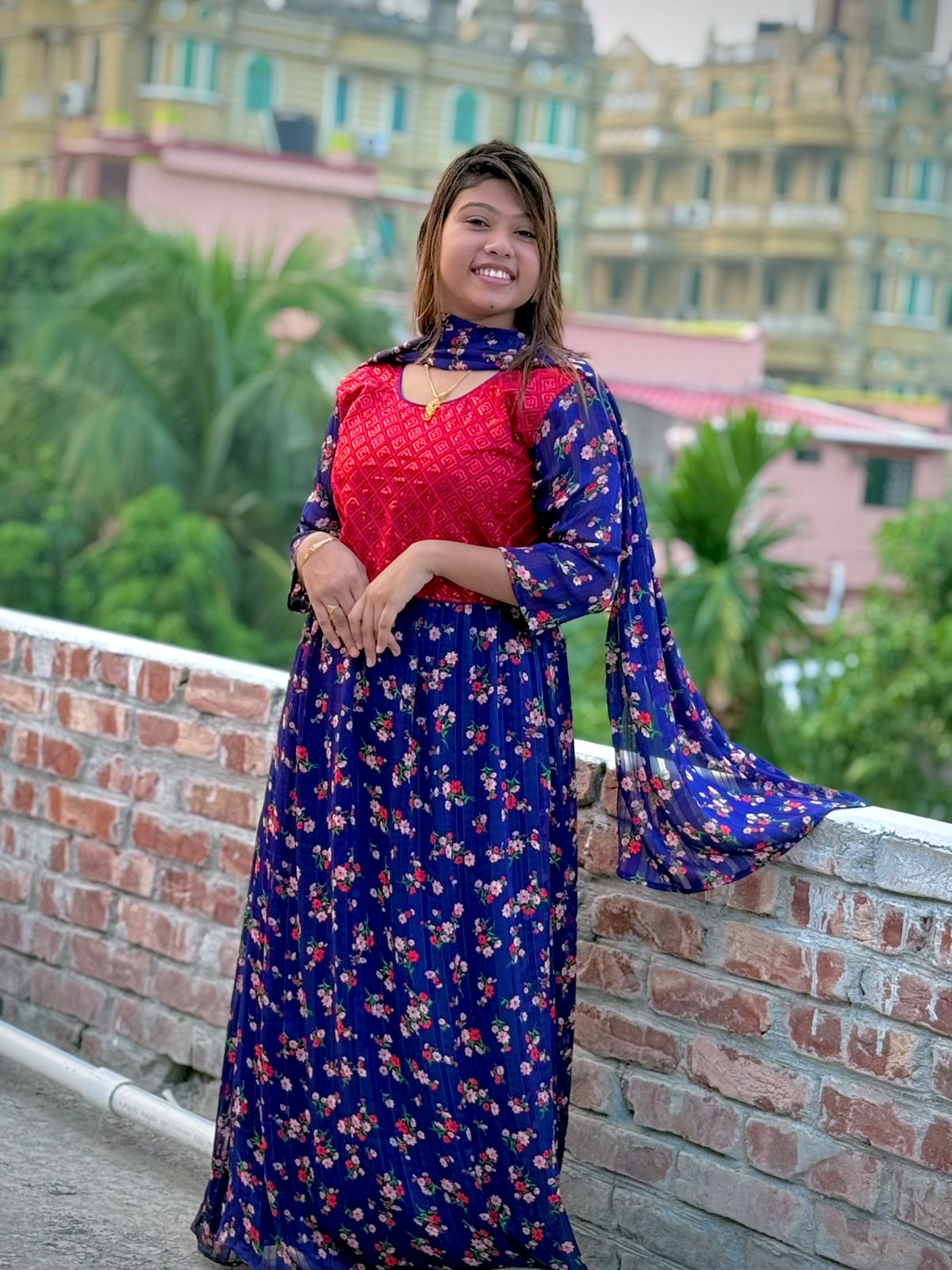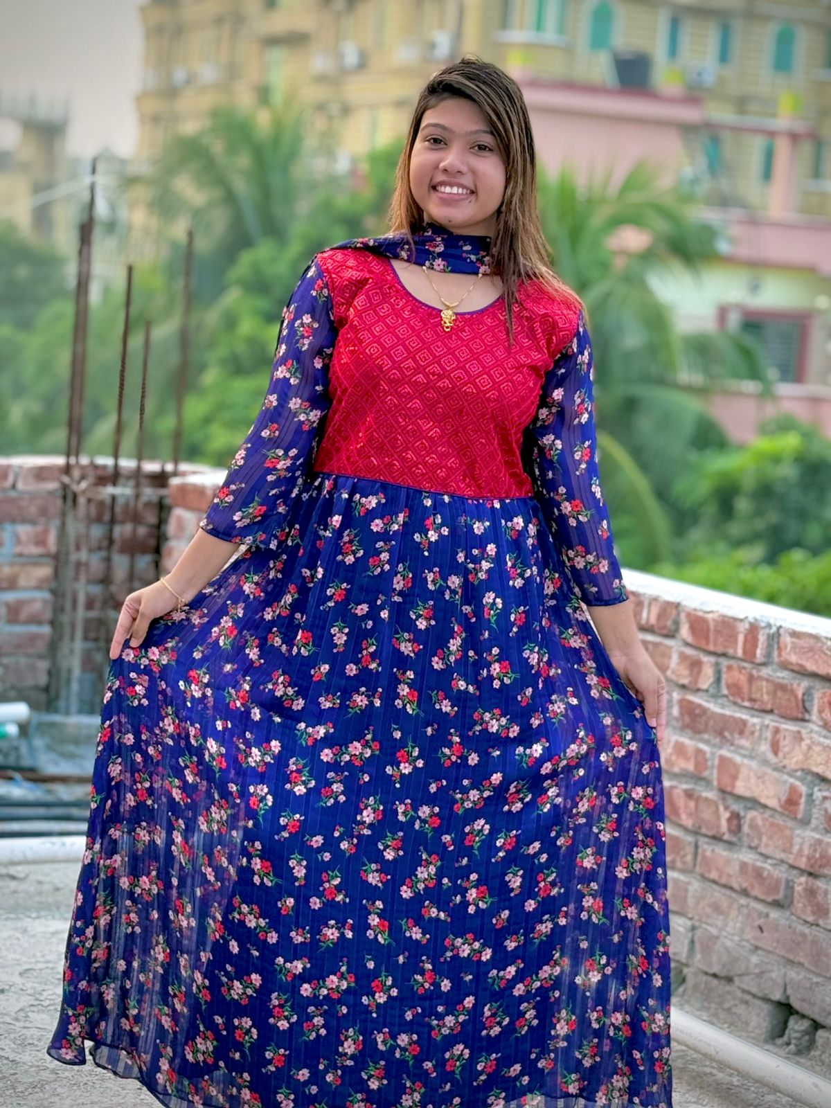 জামা+ওরনা+পেন্ট (গাউন থ্রি-পিস)