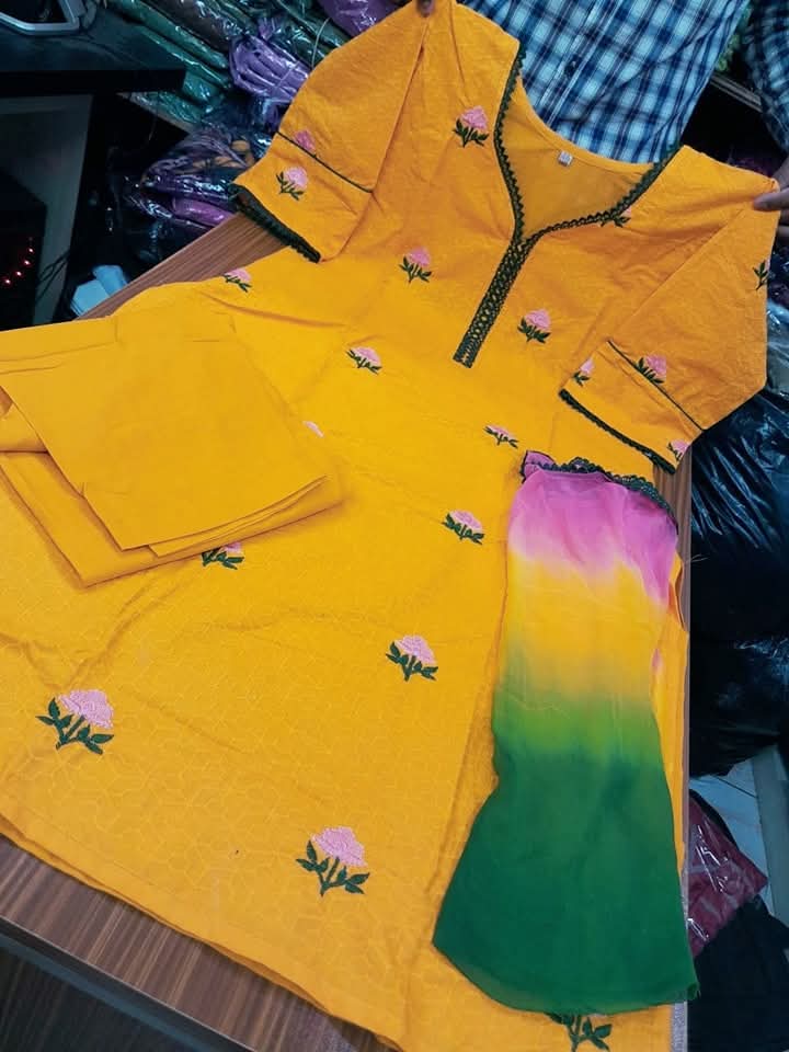 চিকেন কারি এমব্রয়ডারি থ্রি পিস