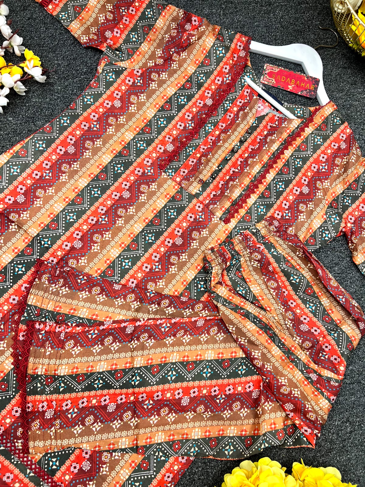জামার বিবরণ:- সুতি কাপড়ের উপর ডিজিটাল প্রিন্ট এর কাজ করা থাকবে এবং কি লেইস এর কাজ করা থাকবে।