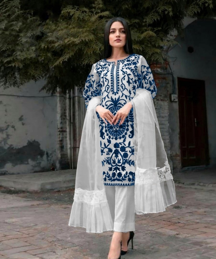 সেমি স্টিচড অর্গানজা এমব্রয়ডারি থ্রী পিস