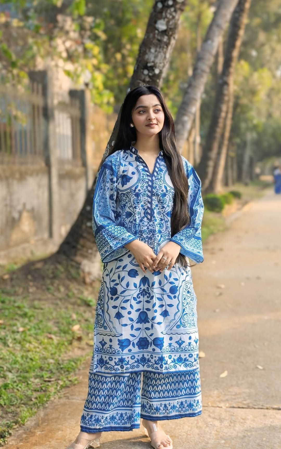 পেন্ট:- সেম কাপড়ের উপর সেম প্রিন্টের কাজ করা থাকবে!! ফ্রি সাইজ লং ৩৮/৪০