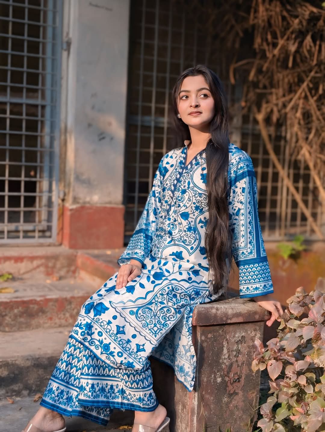 জামা:- দুবাই সিল্ক কাপড়ের উপর ডিজিটাল প্রিন্টের কাজ করা থাকবে! বডি সাইজ:- ৩৮/৪০/৪২/৪৪ লং:-৪০