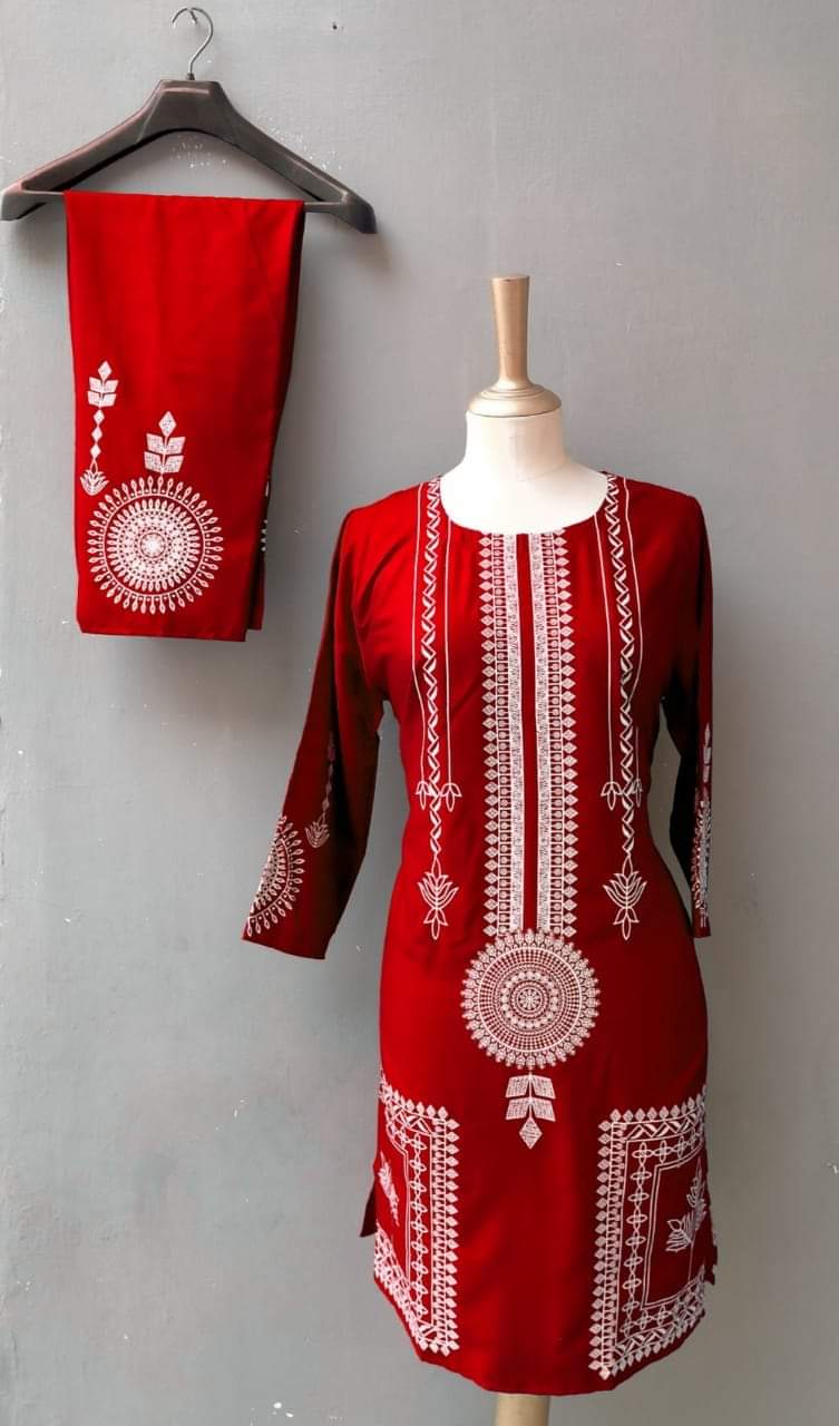জামা :- VIP লিলেন কাপড়,,ফ্রী সাইজ, 44 পর্যন্ত পড়তে পারবে।।।জামার লং:-44/45,,,, ফুল বডিতে কম্পিউটার এমব্রয়ডারি কাজ করা থাকবে গলায় এবং হাতায় লেস এবং বাটন লাগানো থাকবে।।