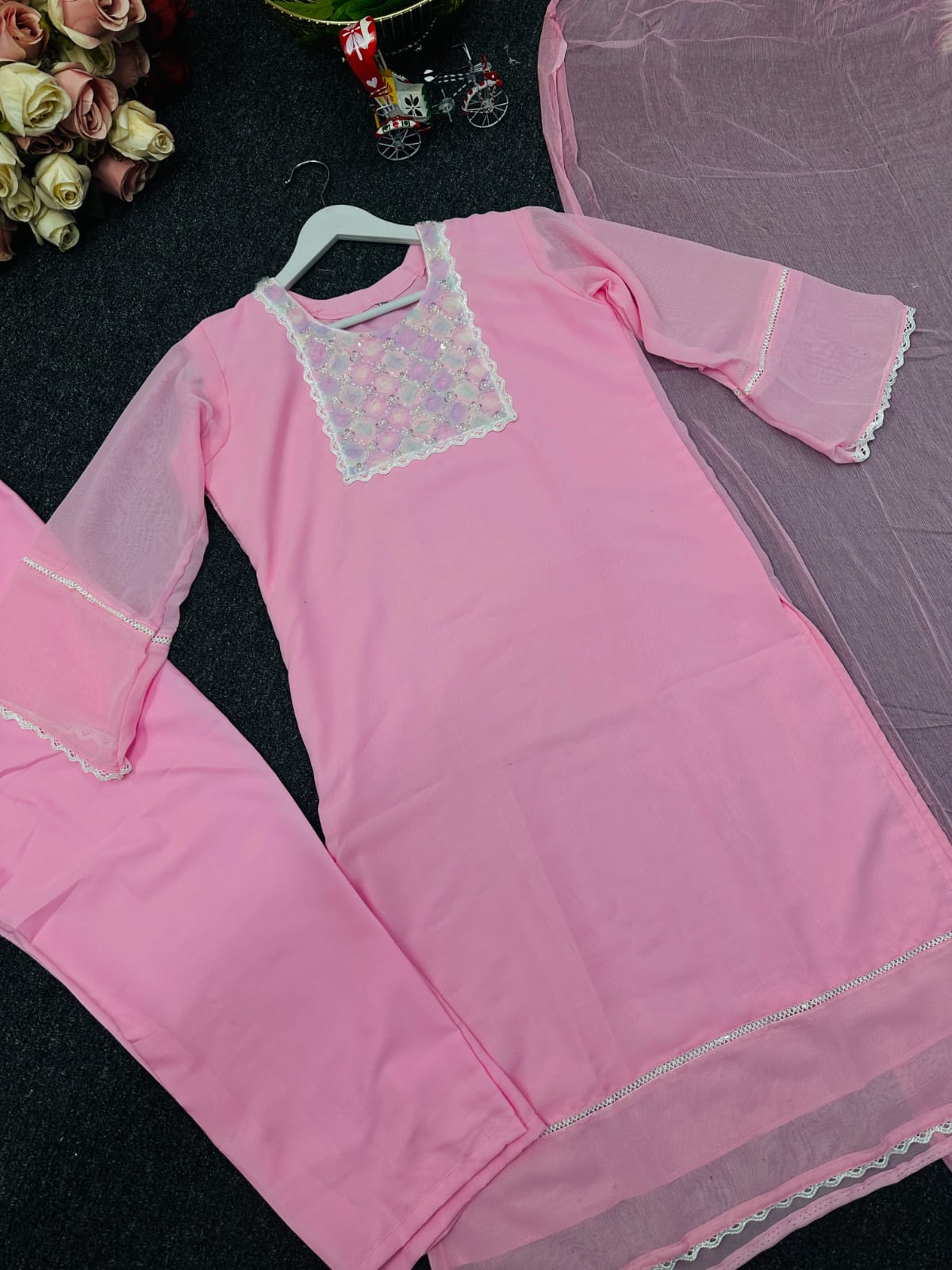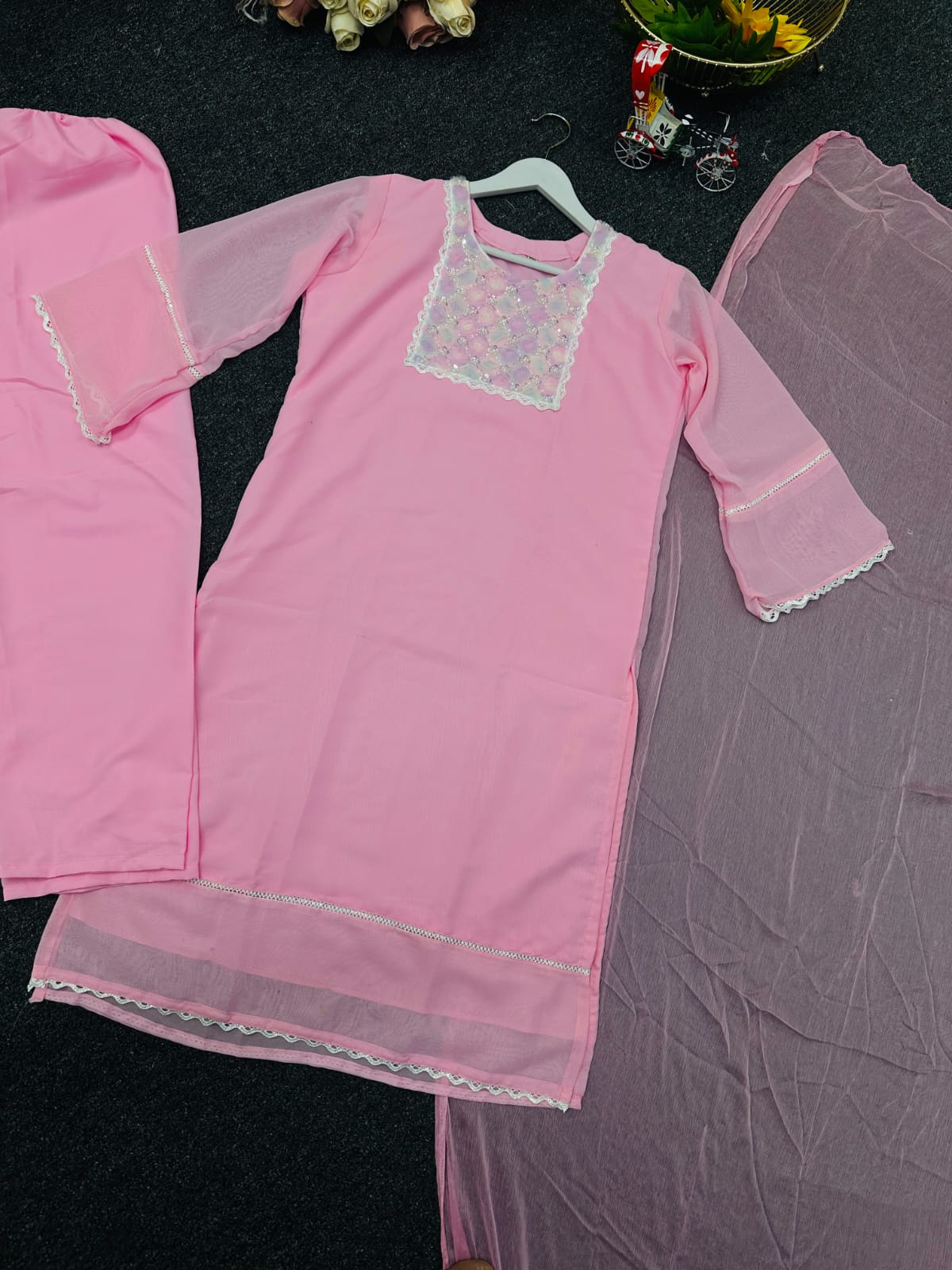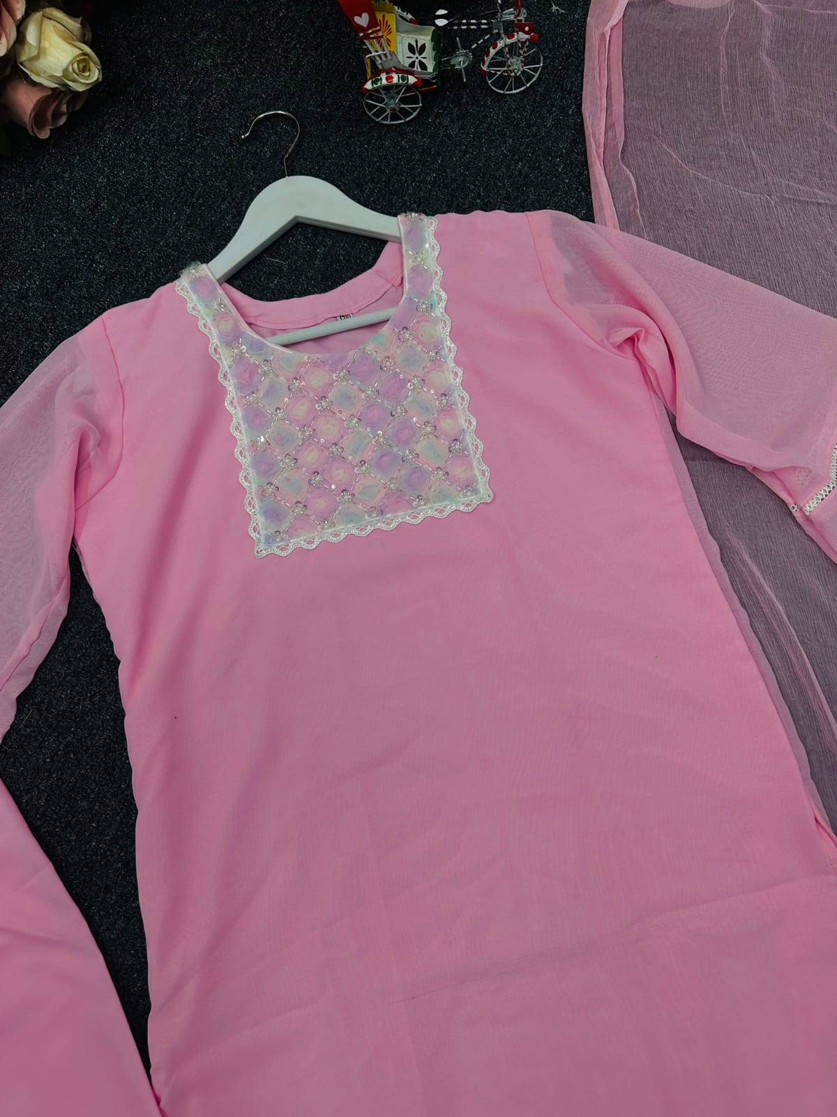 দক্ষ কারিগর দ্বারা সেলাই করা জর্জেট কারচুপি কাজ করা ফোর পিস কালেকশন।।
