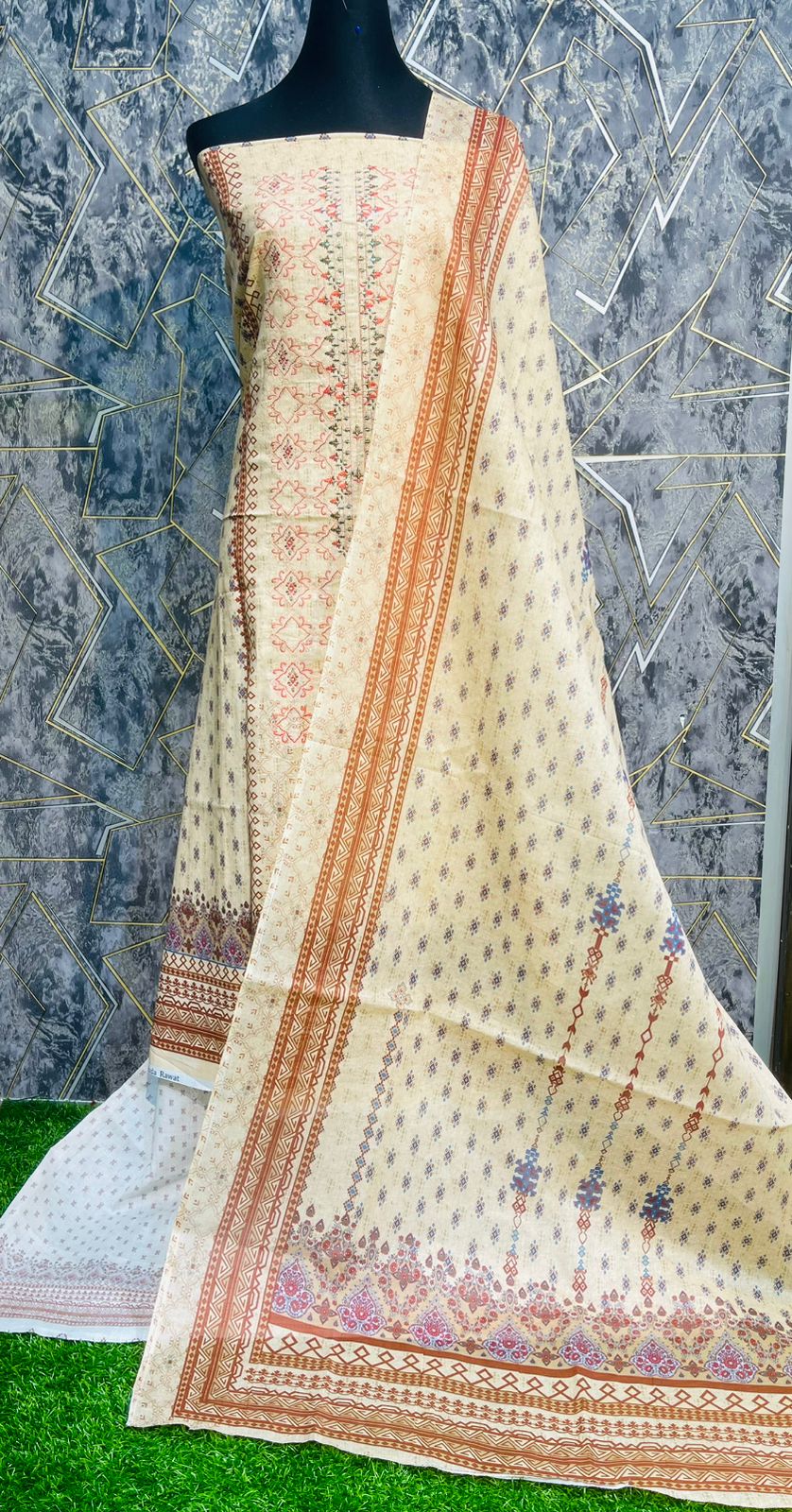 🌟রুচিসম্মত ড্রেস হোক আপনার প্রতিদিনের সঙ্গী! আলহুদা বুটিক্স কটন থ্রি পিস জামার বুকে এম্বোডারি +সিকুয়েন্স কাজ করা