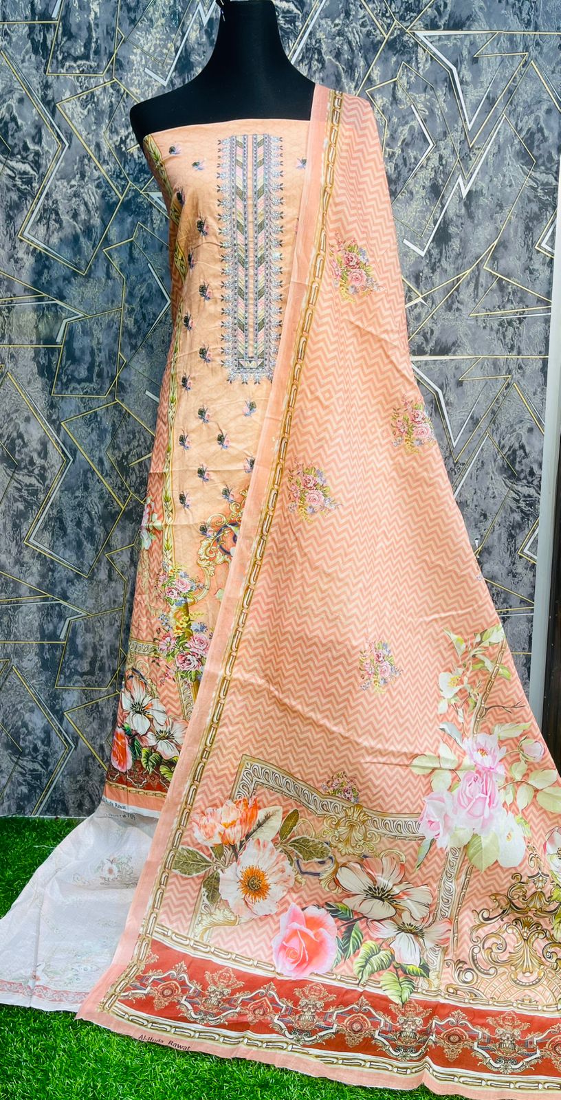 🌟রুচিসম্মত ড্রেস হোক আপনার প্রতিদিনের সঙ্গী! আলহুদা বুটিক্স কটন থ্রি পিস জামার বুকে এম্বোডারি +সিকুয়েন্স কাজ করা