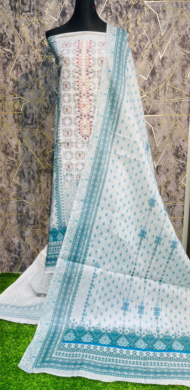 🌟রুচিসম্মত ড্রেস হোক আপনার প্রতিদিনের সঙ্গী! আলহুদা বুটিক্স কটন থ্রি পিস জামার বুকে এম্বোডারি +সিকুয়েন্স কাজ করা