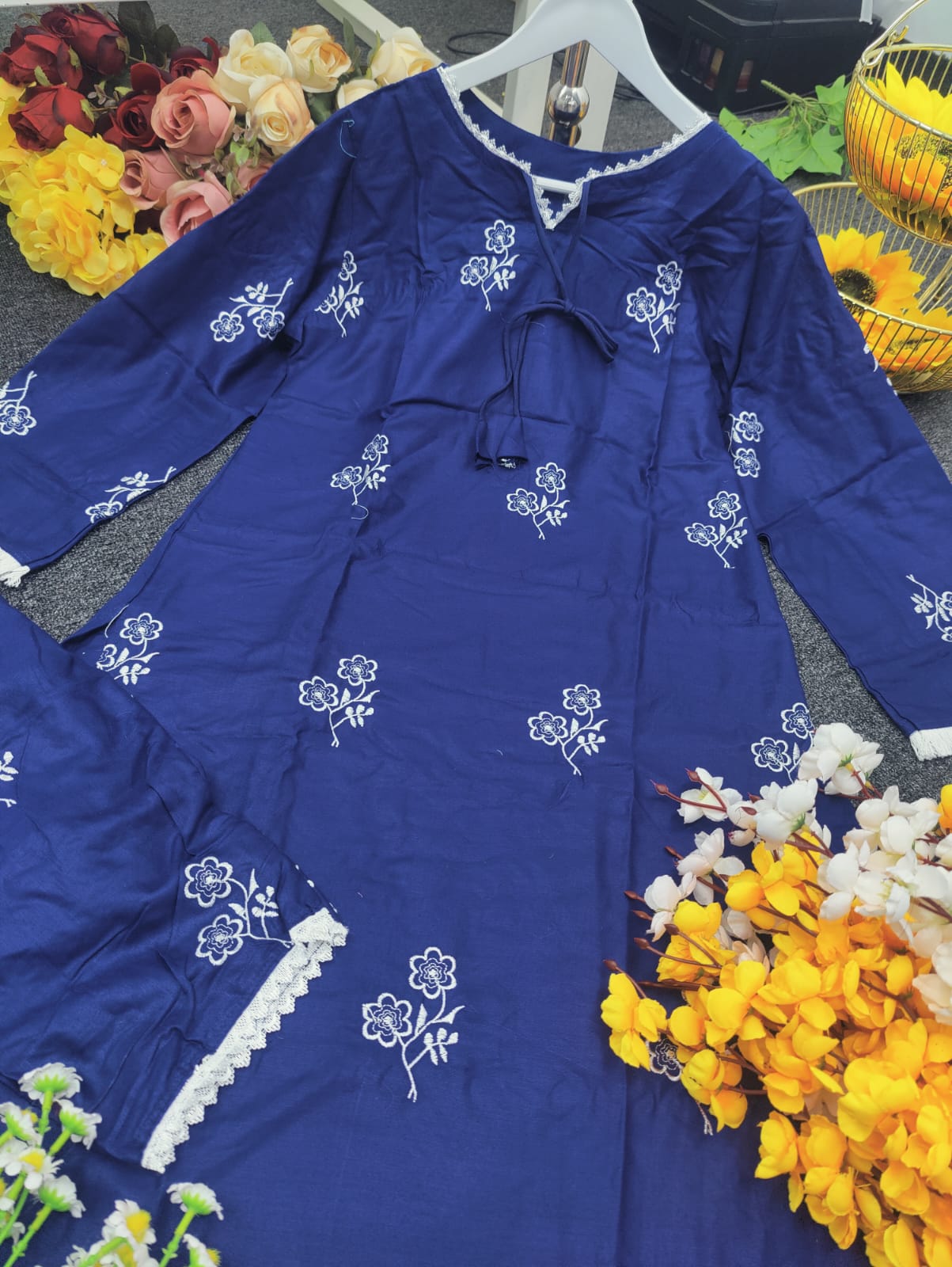 পেন্ট:-সেম কাপড়ের উপর সুন্দর করে এমব্রয়ডারি কাজ এবং কি নিচে লেইস লাগানো থাকবে। ফ্রি সাইজ