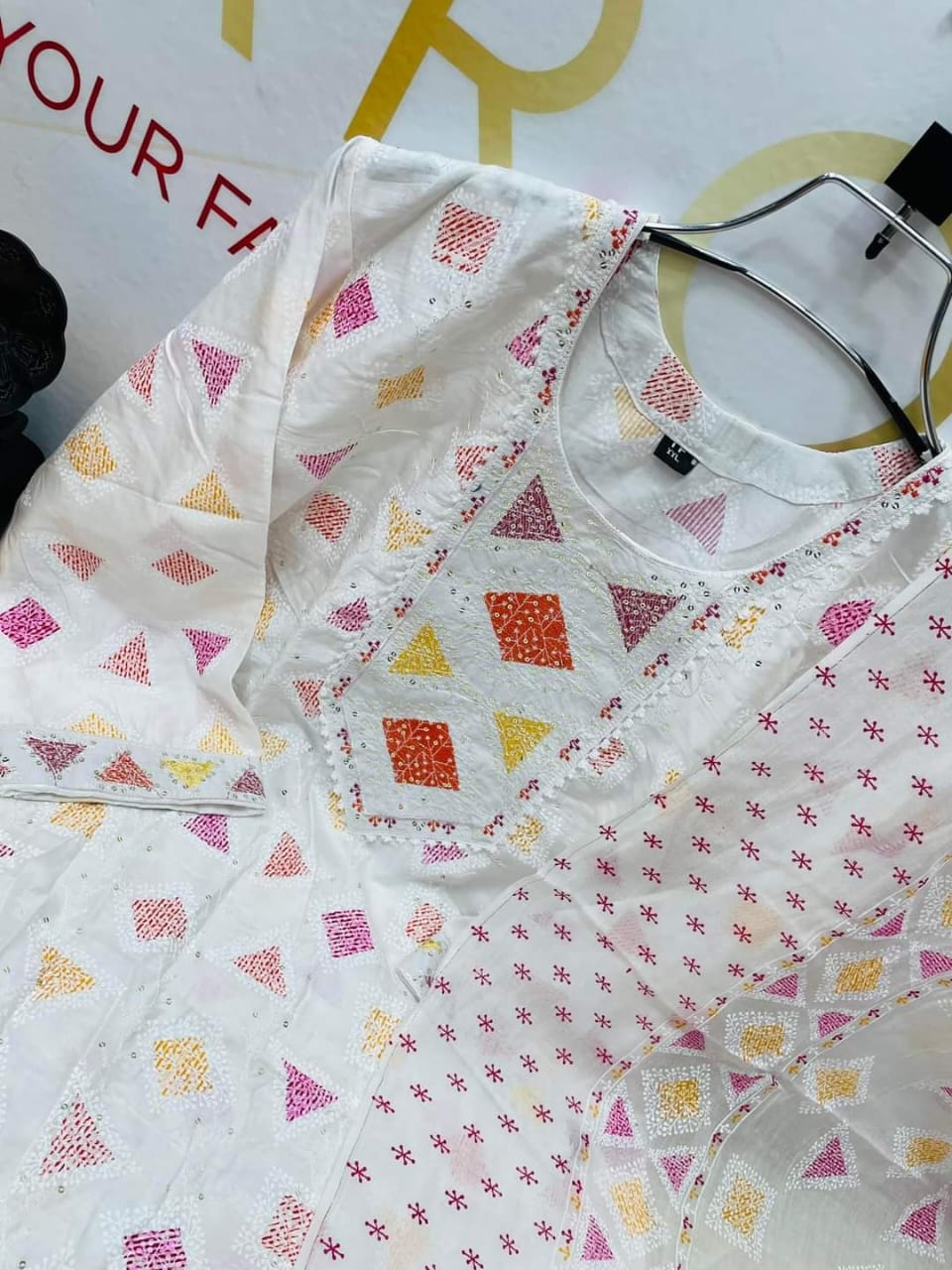 রেডিমেড কটন বুটিক্স থ্রি পিস ফেব্রিক্স, বডি –এসি কটন,সাইজ(৩৮–৪৬) ওড়না –রেওন কটন, সেলোয়ার–লিলেন, ফুল বডি ও গলা প্যানেলে সিকুইস কাজ করা ।100%কোয়ালিটি ড্রেস।