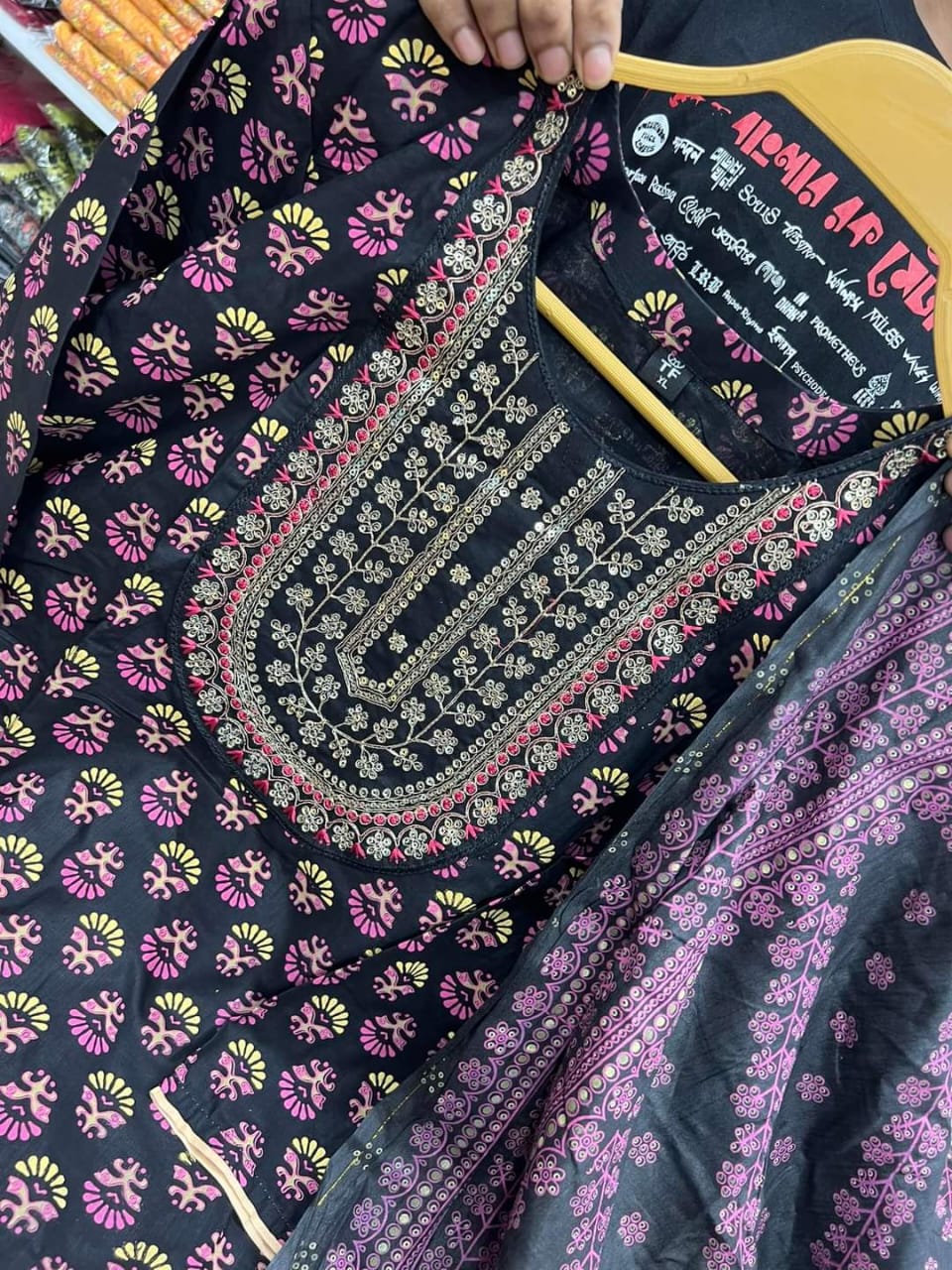 কট সুতা দিয়ে গলা ও প্যানেলে এমব্রয়ডারি কাজ করা, 100%কালার গ্যারান্টি ।সাইজ:-৩৮-৪৪