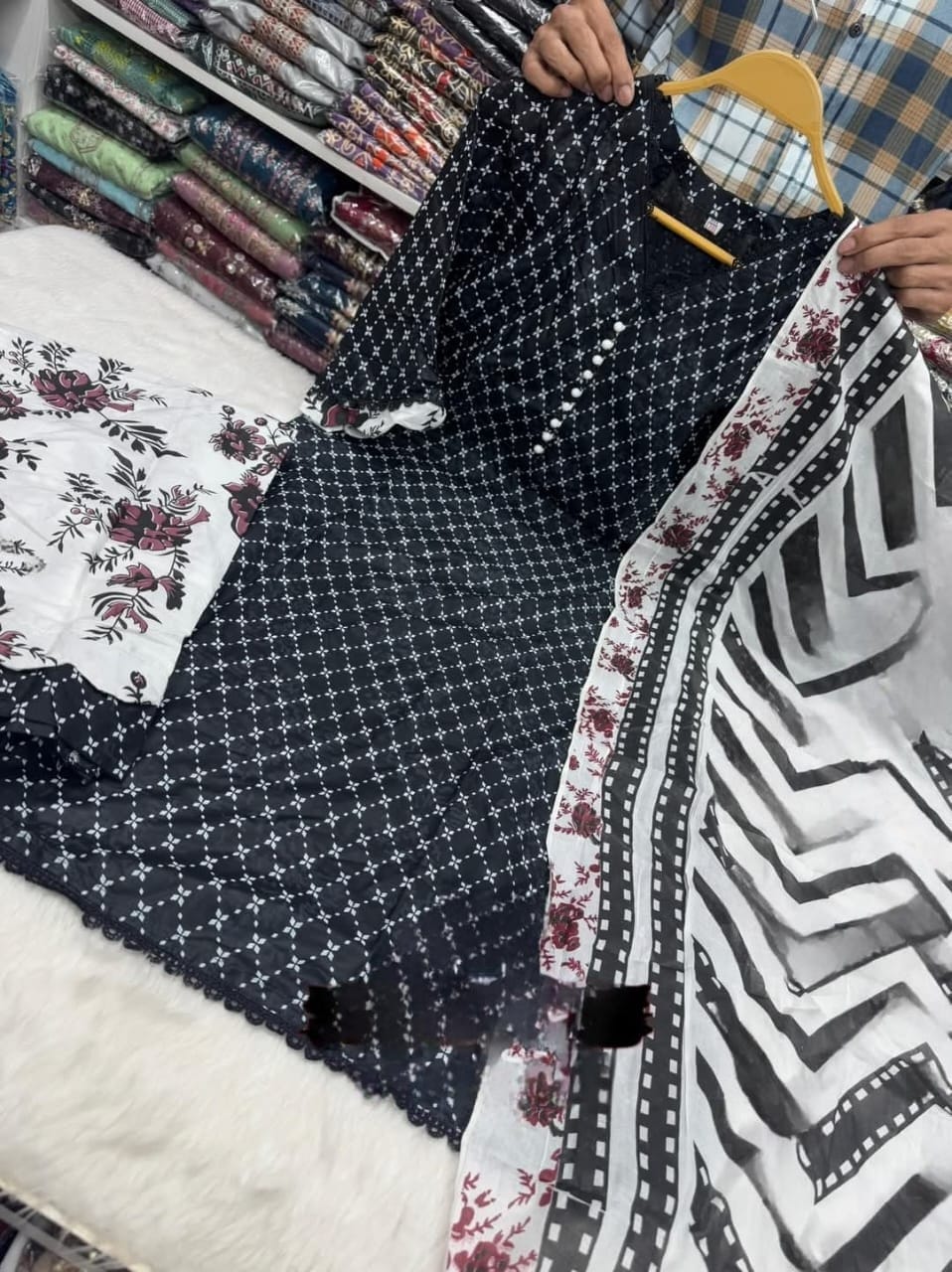 সম্পূর্ণ লেটেস্ট ডিজাইনের প্রিন্টের হাই কোয়ালিটি থ্রি পিস কালেকশন।
