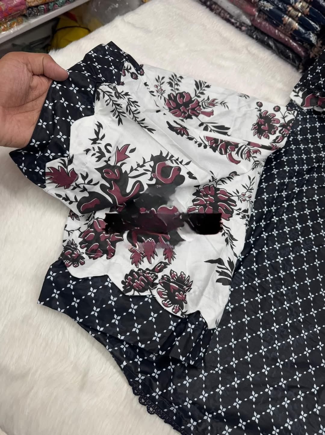 সেলোয়ার:- এসি কটন কাপড়ের উপর স্ক্রিন প্রিন্ট করা থাকবে, ডিজাইন করা থাকবে সালোয়ারের নিচে,সম্পূর্ণ সেলাই করা থাকবে। লং ৩৮/৩৯…. কোমর ফ্রি সাইজ।।