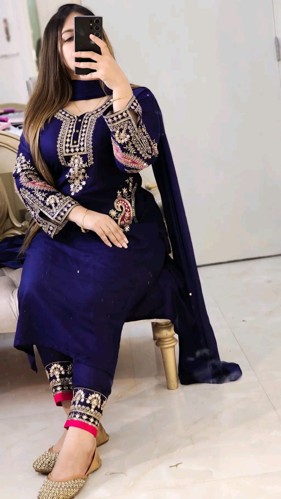 সালোয়ার প্যানেল সিকোয়েন্স এমব্রয়ডারি। ওরনস্টোন করা