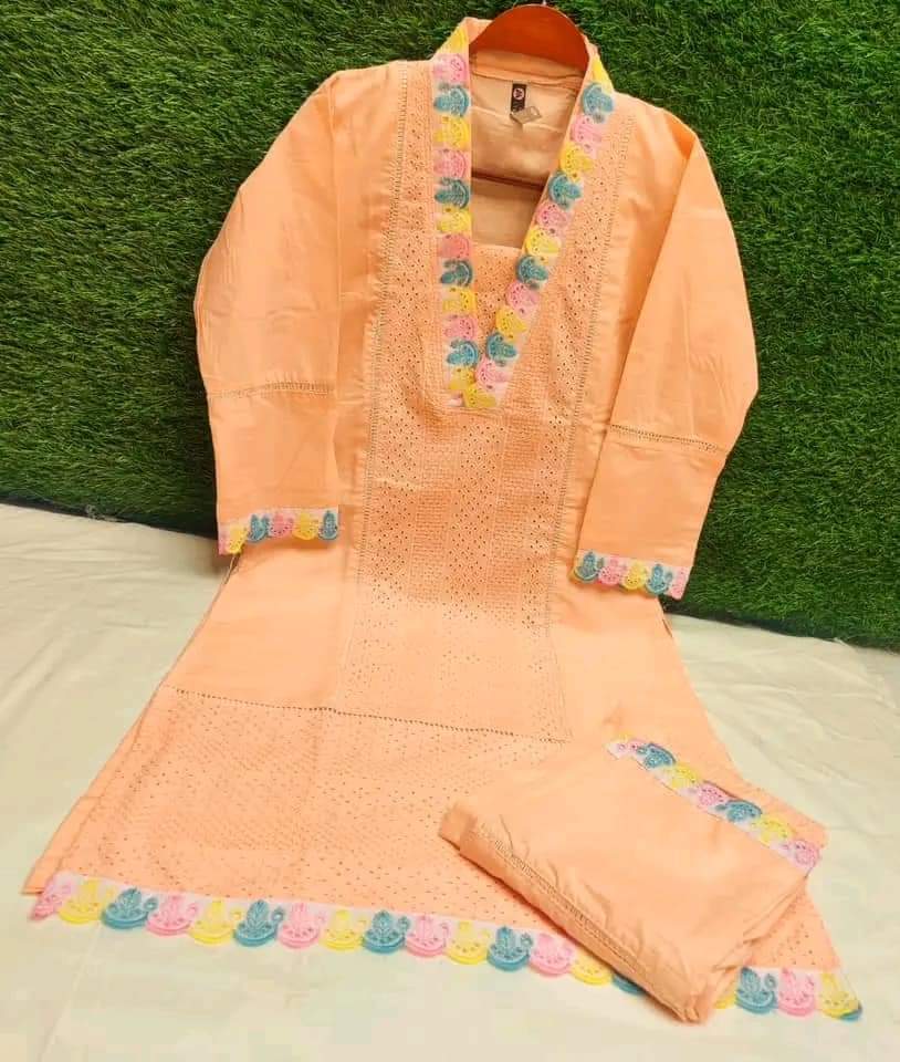 সুন্দর লুকিং চিকন কারি সুতির রেডিমেড টু পিস
