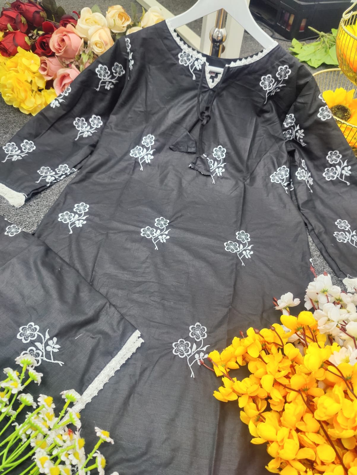 পেন্ট:-সেম কাপড়ের উপর সুন্দর করে এমব্রয়ডারি কাজ এবং কি নিচে লেইস লাগানো থাকবে। ফ্রি সাইজ