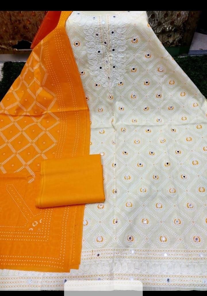 স্ক্রিন প্রিন্ট এর উপর আড়ি সুতার ডলারের কাজ করা থ্রি পিস