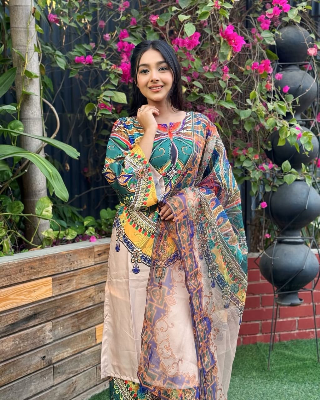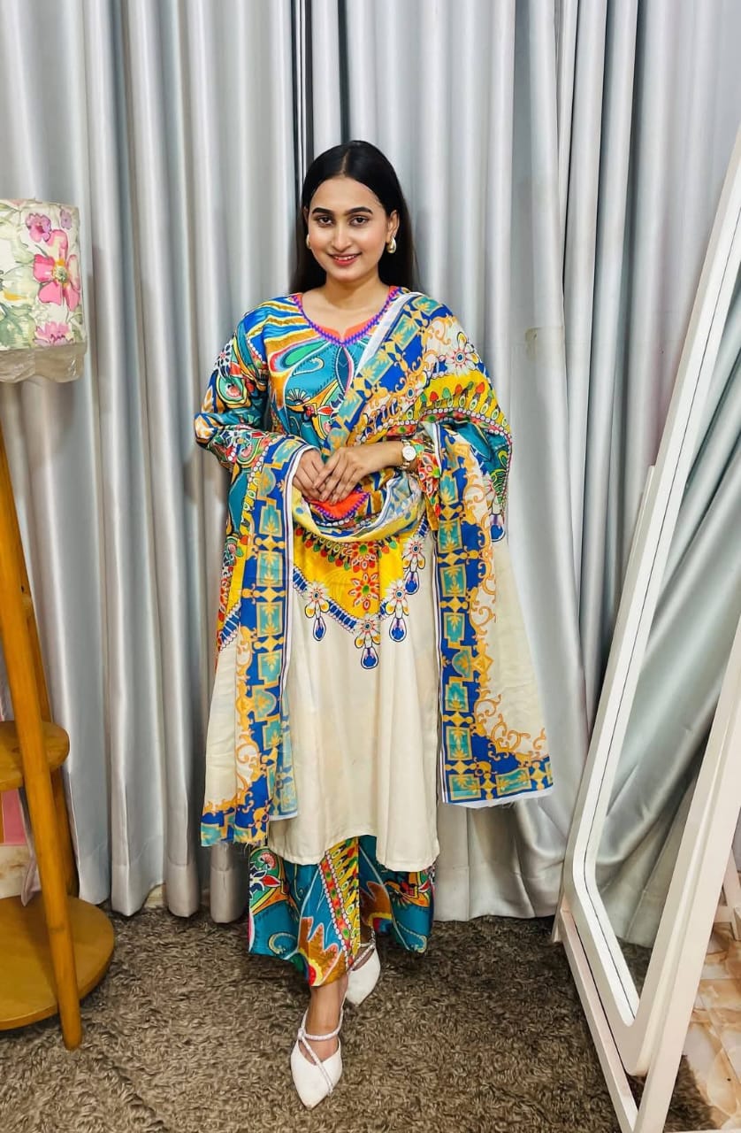 Body:- soft silk kapor Digital print kora