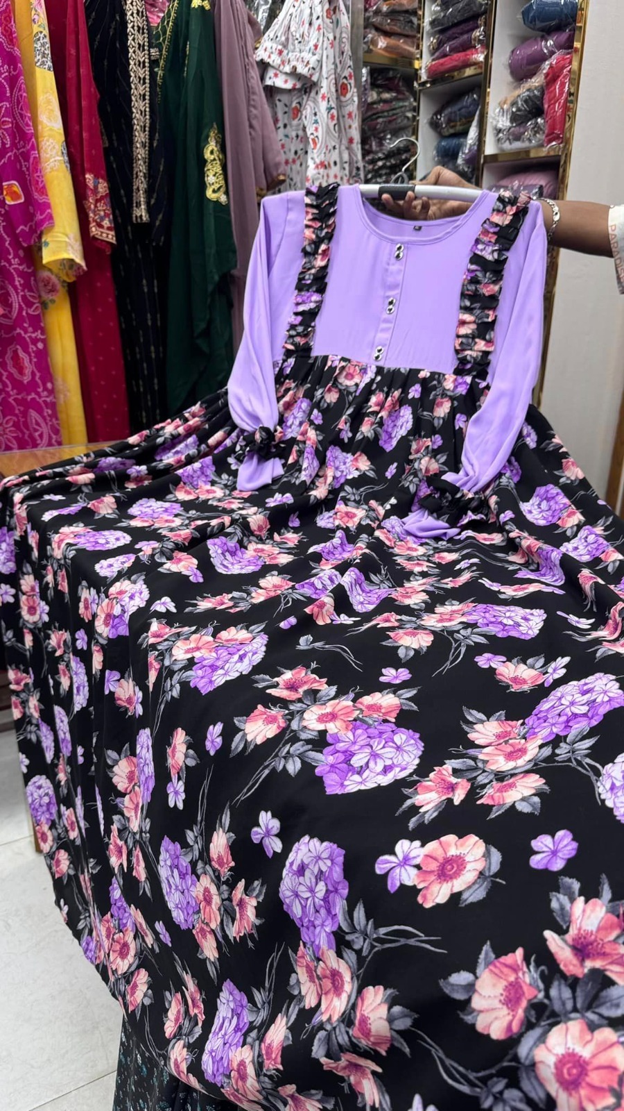 Details: Fabric: Premium Dubai Cherry Dress Long: 52-54-56 Body Size: Free Size (46)